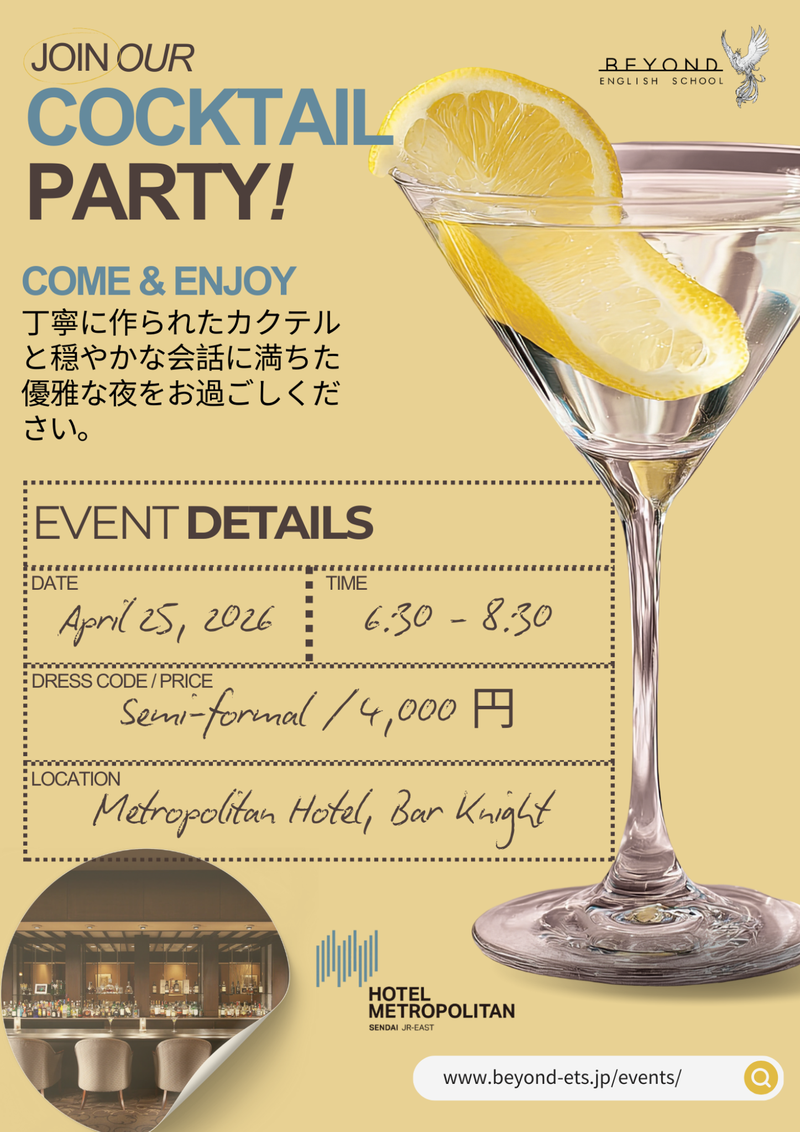 Beyondでは日本にいながらも世界と触れ合うことができ、理解を深め、皆さまが自然に英語を使える機会を提供しております。